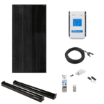Paketlösning på 185W med Sunlux Optitec panel byggd på effektiva TopCon celler. Laddningsregulator från Victron med enkel och smidig driftövervakning via appen Victron Connect.