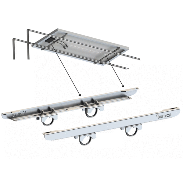 Uniteck UNIFIX 150 WP – rostfritt monteringsfäste för solpaneler på båge, räcke och däck
